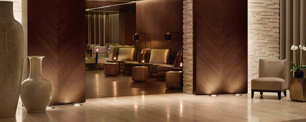 The en-suite bathroom is a tribute to glass and marble; there’s a huge walk-in monsoon shower, sleek bathtub and a sizable basin area. Each room includes an entrance vestibule, work station and seating area with wall-to-wall windows overlooking the bustling city.